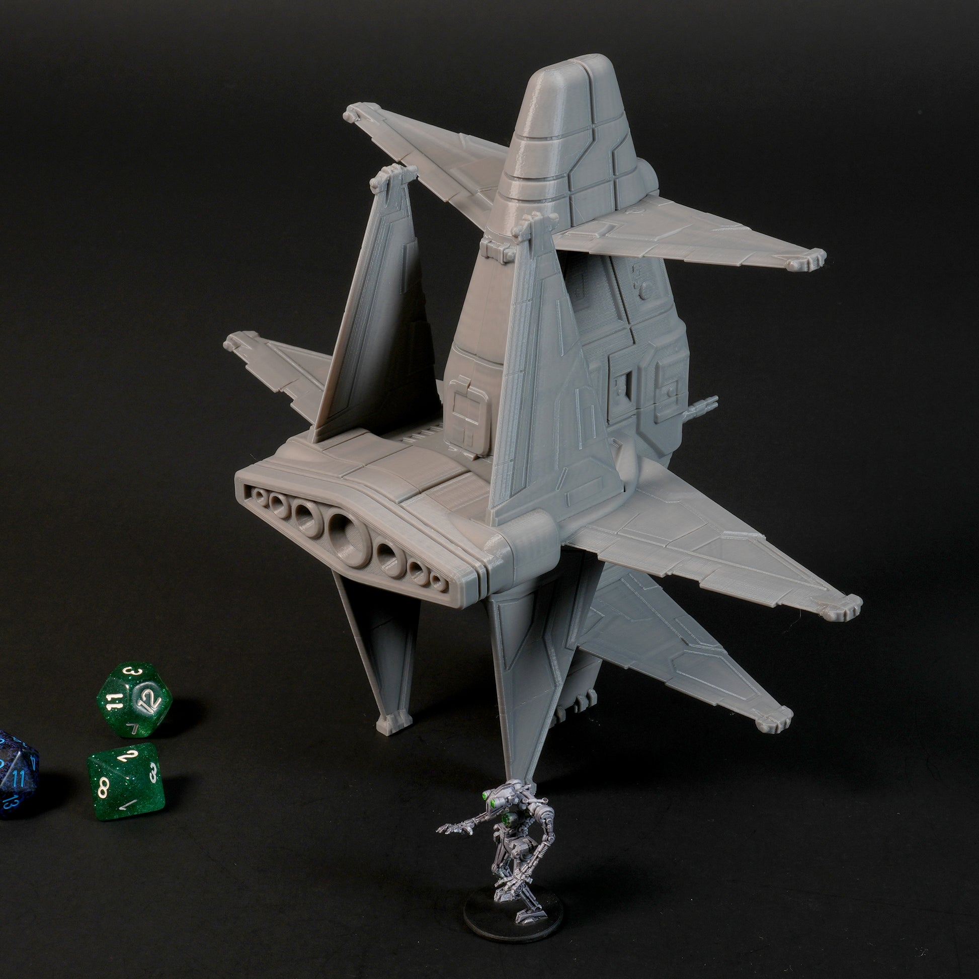 Der Albatros Starfighter ist ein einsitziges Kampfraumschiff für 28-mm-Sci-Fi-Tabletopspiele. Die markante Twin-H-Flügelkonfiguration ermöglicht kontrolliertes Gleiten in dünnen Atmosphären, während leistungsstarke Hecktriebwerke eine hohe Manövrierfähigkeit im angetriebenen Flug bieten.